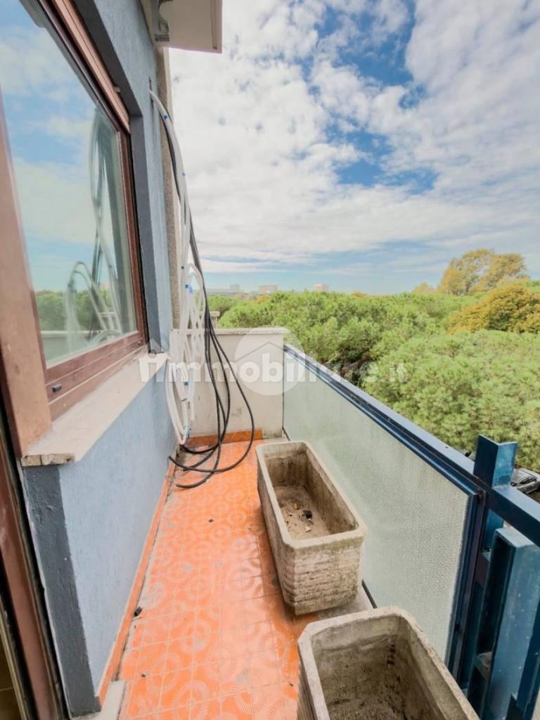 L’appartamento si apre su un comodo ingresso che conduce al luminoso soggiorno con cucina a vista e accesso a un balcone con affaccio panoramico sull’EUR. La zona notte comprende una camera da letto anch’essa dotata di balcone, un pratico disimpegno e un bagno, all’interno del quale è stata ricavata una funzionale zona lavanderia.